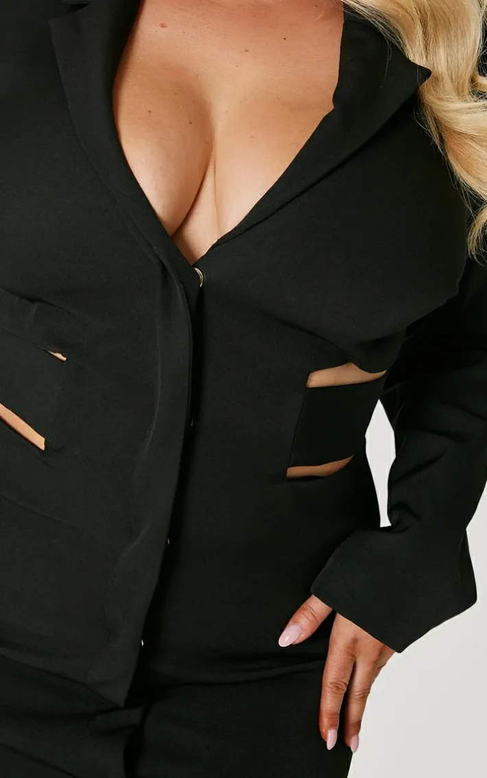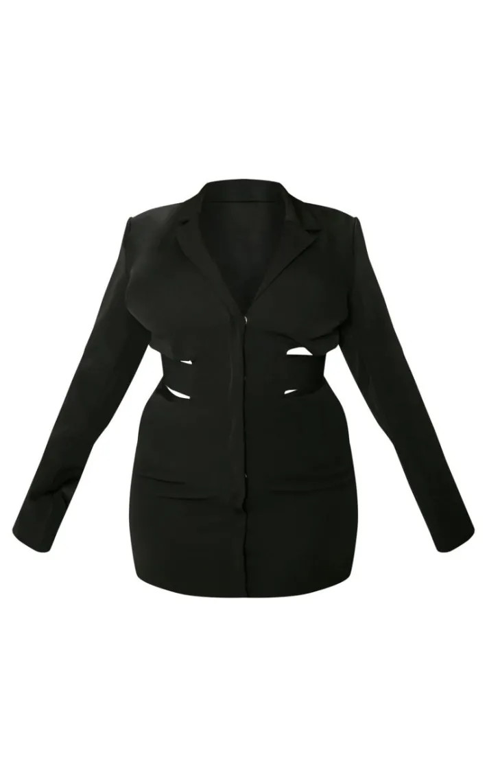 Opt for this plus black woven cut out tie back blazer dress whatever your weekend plans. With its versatile black hue, luxe woven material and cut out tie back design, we know you’ll look and feel your most confident self. For a look that won’t go unnoticed, style with a pair of black court heels and a shoulder bag.