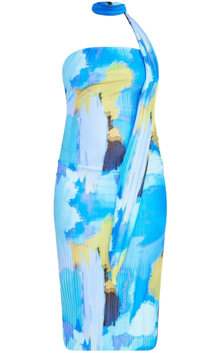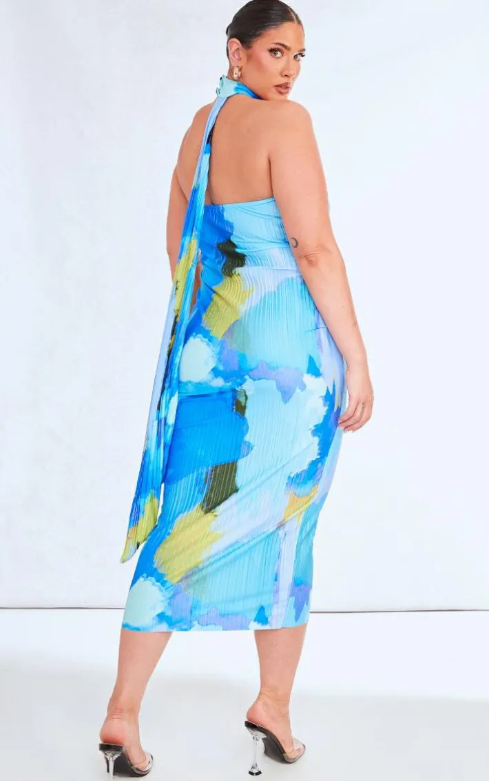Be sure to turn heads in this plus blue abstract chocker plisse midi dress. Brought to you in a bold blue hue plisse material with an abstract print design, choker detailing for that extra touch of glam and a figure-flattering midi fit, how can you not fall in love? Style this midi dress with clear strap heels and statement accessories for a weekend-worthy look to be remembered.