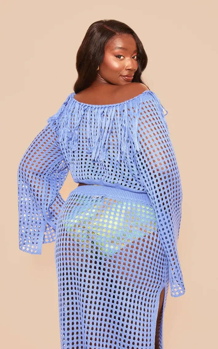 Your wardrobe is calling out for this plus blue knitted cropped tassel detail top for your new season look. Brought to you in a blue knitted material with a cropped length and a tassel detail, this plus top has got you covered. With a flattering fit how could you resist? Team with a maxi skirt, clear heels and gold accessories for a weekend-worthy finish.