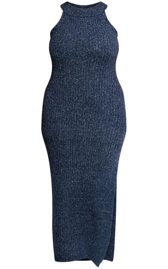 Be on trend this season with this plus blue marl knit high neck racer maxi dress. Brought to you in a blue marl knit material with a racer high neck and a maxi length, you will bring all the edge to your outfit of the day. This maxi dress is perfect for those on-the-go days. Team with box-fresh kicks and accessories to be the center of attention wherever you step foot.