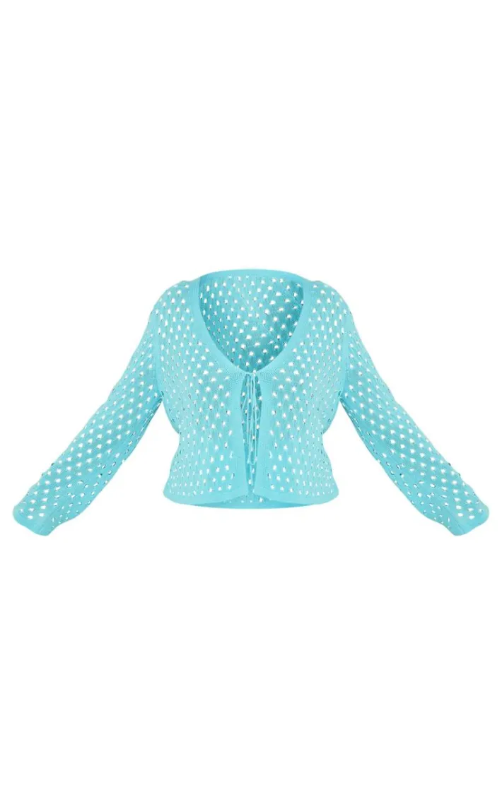Switch up your new season style game with this plus blue tie front hole detail knit top. Brought to you in a blue knit material with a tie front design, long sleeves and hole detailing, how can you say no? Style this plus top with the matching skirt, sandals and sunglasses for a look that is sure to make you stand out from the rest.