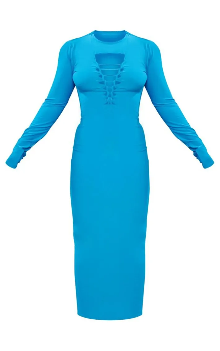 Dare to stand out from the crowd in this plus bright blue laser cut long sleeve maxi dress. Whatever your plans you’re sure to have all eyes on you in this plus maxi dress. With a bright blue material, a laser cut out design and long sleeves, you won’t be able to resist this maxi dress. Pair this bright blue dress with clear slip on heels and gold hoop earrings for a look no one will forget.