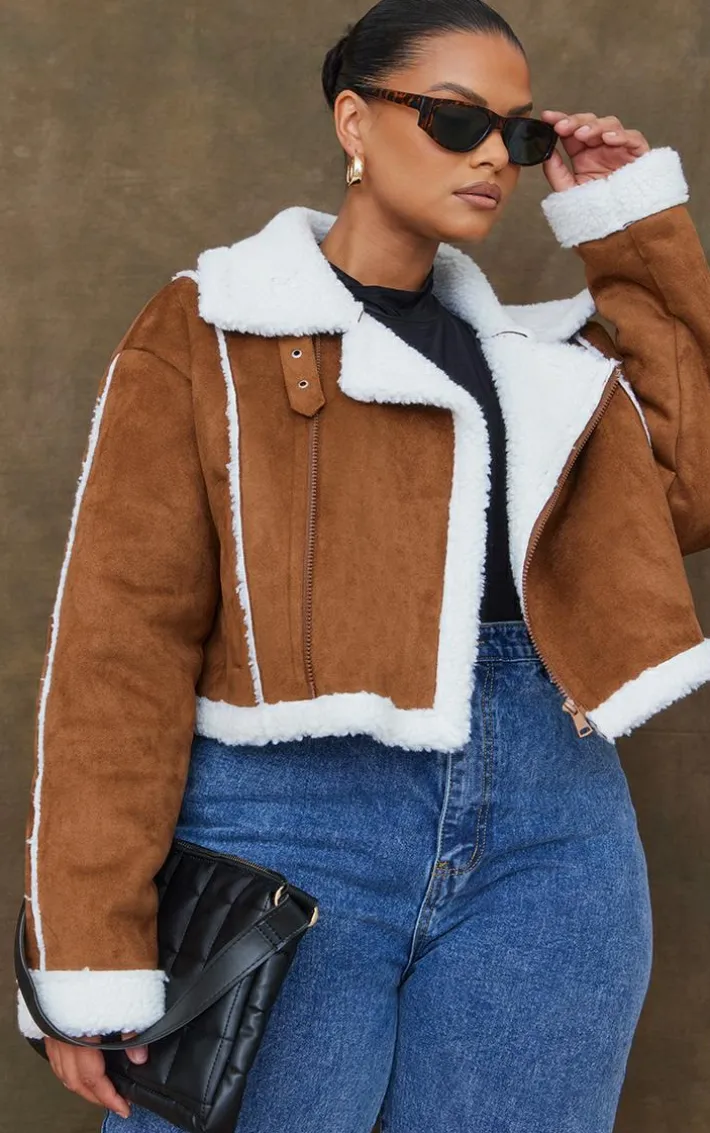 This coat is at the top of our new season hit list. Featuring a brown hue faux suede material with a borg lined design and a super cropped fit, we’re obsessed. Wear with your everyday wardrobe pieces to complete the look.