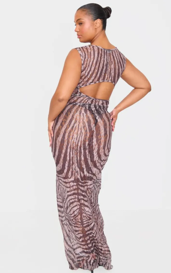 Turn heads this new season in this plus brown crinkle lace maxi dress. Brought to you in a brown hue crinkle lace material with a sheer design, this maxi dress is a must have for your party wear collection. Team with slip on heels and gold accessories for a look like no other. How can you resist?