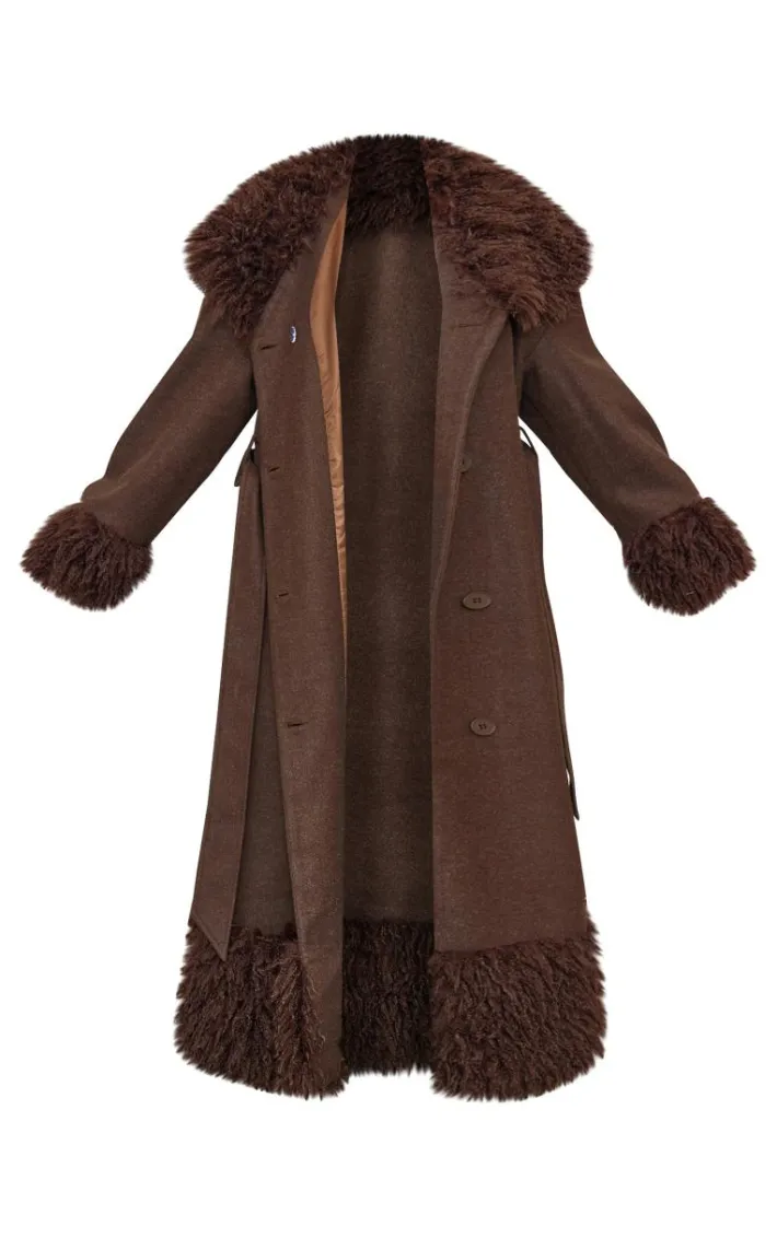 Layer up for the new season in style with this plus brown faux fur trim contrast wool look coat. Brought to you in a brown hue wool look material with a contrasting faux fur trim that’s bringing all the cosy feels, what more could you want? Style this brown coat with your outfit of the day for the perfect finishing touch to any look.