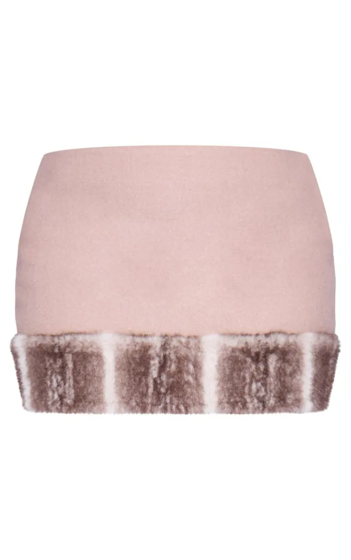 Your new season wardrobe is calling out for this plus brown faux fur trim wool look micro mini skirt. Brought to you in a brown wool look material with a faux fur trim and a micro mini length, what more could you want? This mini skirt is all you need to feel chic. Team with a crop top and your fave accessories for a fool proof finish.