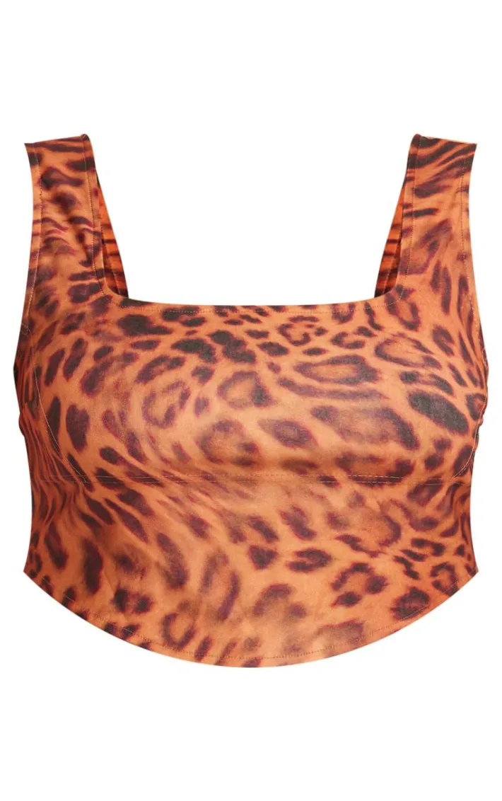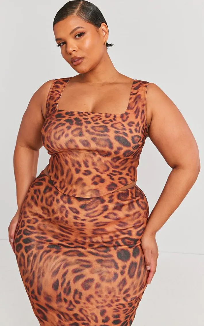 Bring all the drama to your new season wardrobe with this plus brown leopard printed dipped hem corset top, you’re sure to be at the center of attention. This plus top features a brown leopard printed material with a dipped hem design and a corset style that will flatter your unreal figure, how could you say no? Style with the matching skirt, heels and a shoulder bag for a look no one will forget.