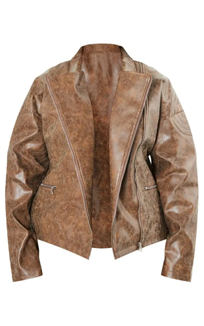 We’re totally in love with this plus brown oversized faux leather distressed look Biker jacket for your new season look doll. Brought to you in a brown faux leather material with a distressed look and an oversized fit, what more could you ask for? This plus Biker jacket is sure to add all the fresh feels to your look and elevate your ‘fit to new heights. Team with cargo pants, chunky kicks and a basic white crop top for a look that won’t go unnoticed.