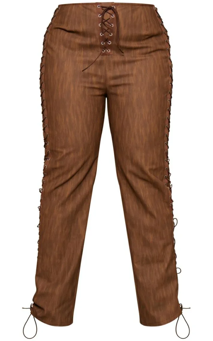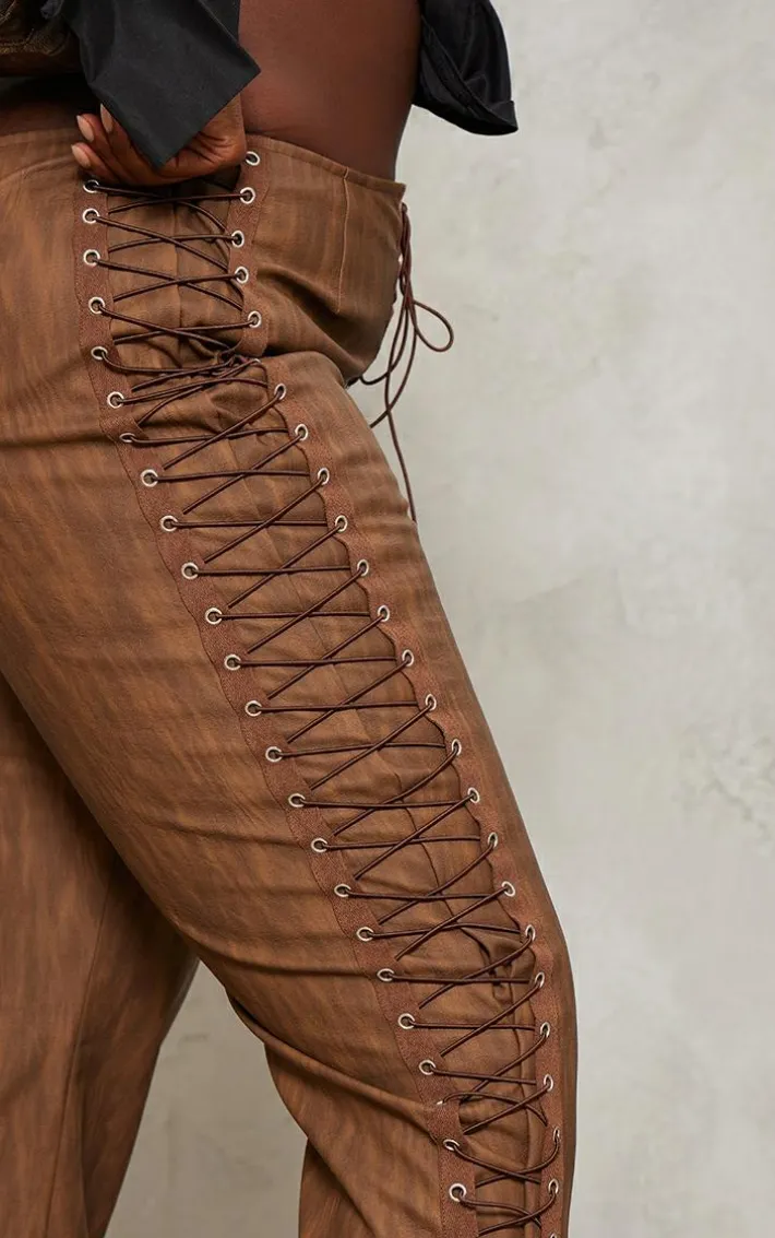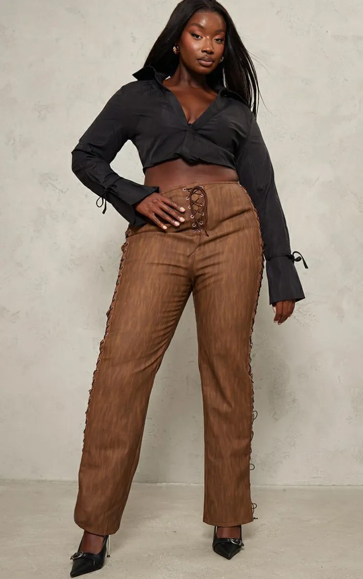 Make weekend styling simple with these plus brown premium washed faux leather lace up side low rise pants, you won’t be able to resist. These plus pants feature a brown washed faux leather material with a lace-up side design and a low rise style. Team with a cropped shirt, heels and a shoulder bag for a fierce finish.