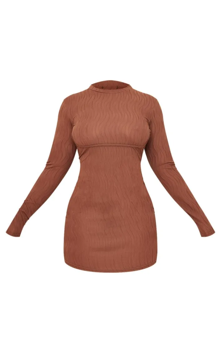 This plus brown textured long sleeve bust seam detail mini dress is here to solve all of your ‘what to wear’ dilemmas this weekend. Brought to you in a brown textured material with bust seam detailing, long sleeves and a mini length, how can you resist? Style this mini dress with heels and gold accessories to elevate the look.