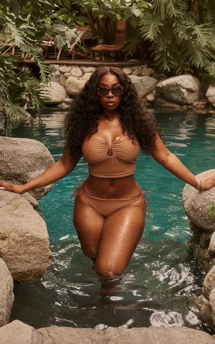 These plus brown tie side mini bikini bottoms are here to banish any of your what to wear dilemmas. Brought to you in a brown material with a tie side, we can’tget enough. From start to finish these mini bikini bottoms will have you looking totally on-trend. For a next-level look simply style with the matching bikini top and your fave accessories. It’s a yes from us.