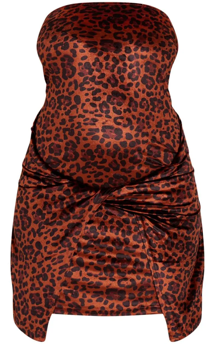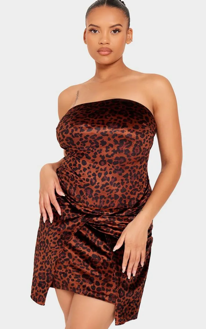 Turn heads in this plus brown velvet leopard knot detail bandeau mini dress. Brought to you in a brown velvet material with a leopard print design and a knot detail adding a touch of luxe like no other. Team this bandeau mini dress with a pair of heels and your go-to accessories for a look we are loving.