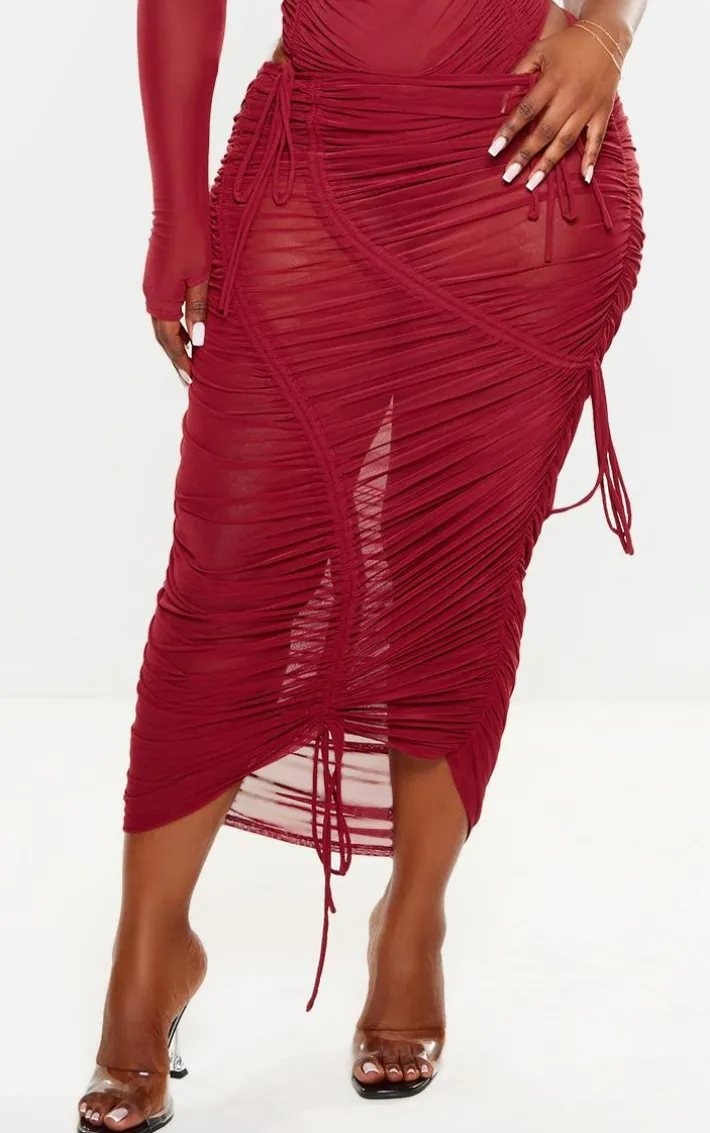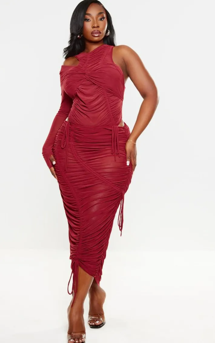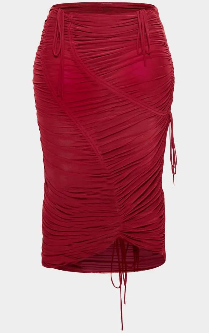 Take the stress out of weekend styling with this plus dark red extreme ruched seam detail midaxi skirt. Brought to you in a dark red material with an extreme ruched design, seam detailing and a figure-flattering midaxi fit, how can you say no? Style this dark red skirt with the matching bodysuit, heels and gold accessories for a look that is sure to have all eyes on you.