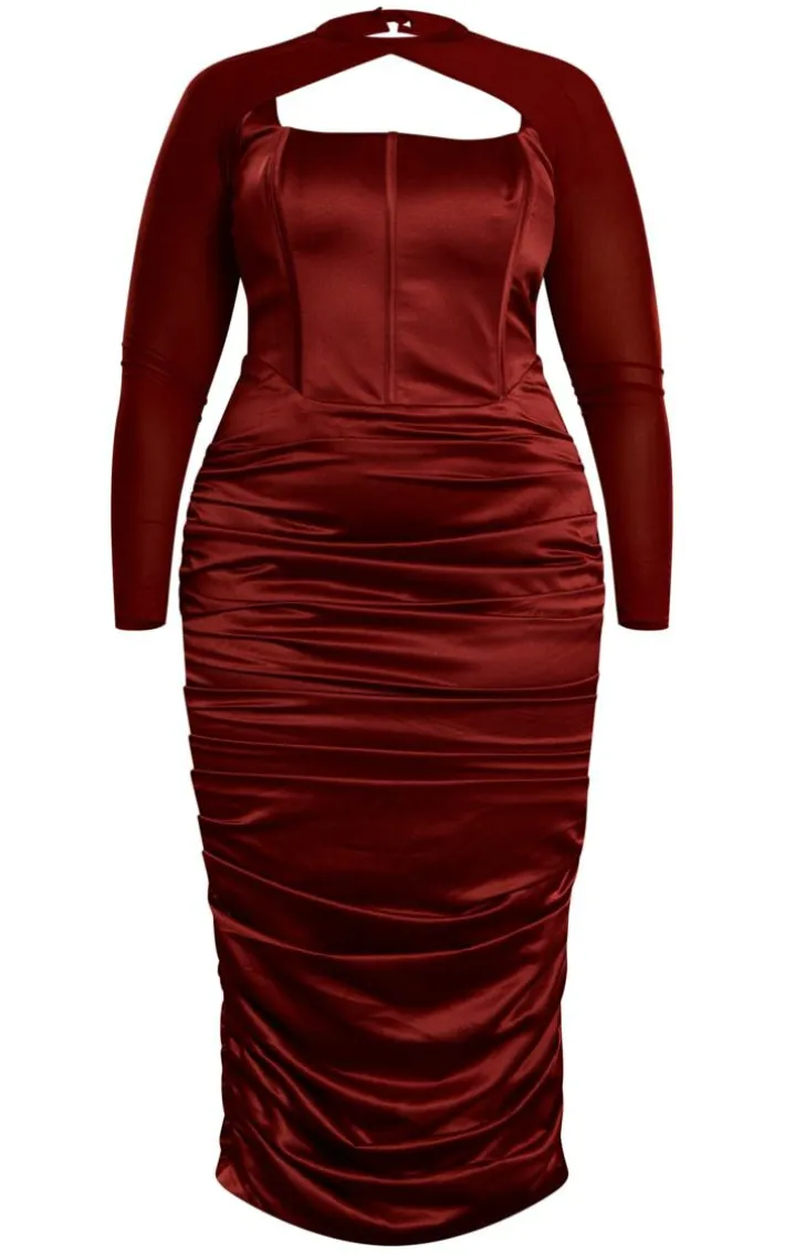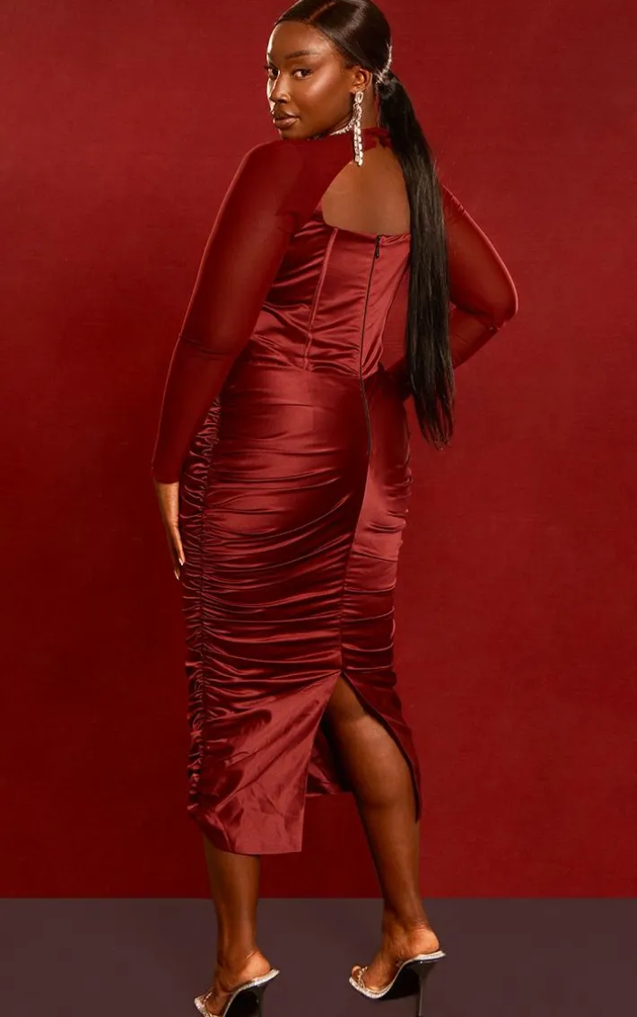 Stand out from the crowd for all the right reasons in this plus cherry red constructed satin mesh sleeve ruched midi dress. Brought to you in a cherry red satin material with a mesh sleeve design, ruched detailing and a midi fit, how can you not fall in love? Style this plus midi dress with your highest heels and luxe accessories for an occasion look to be remembered.