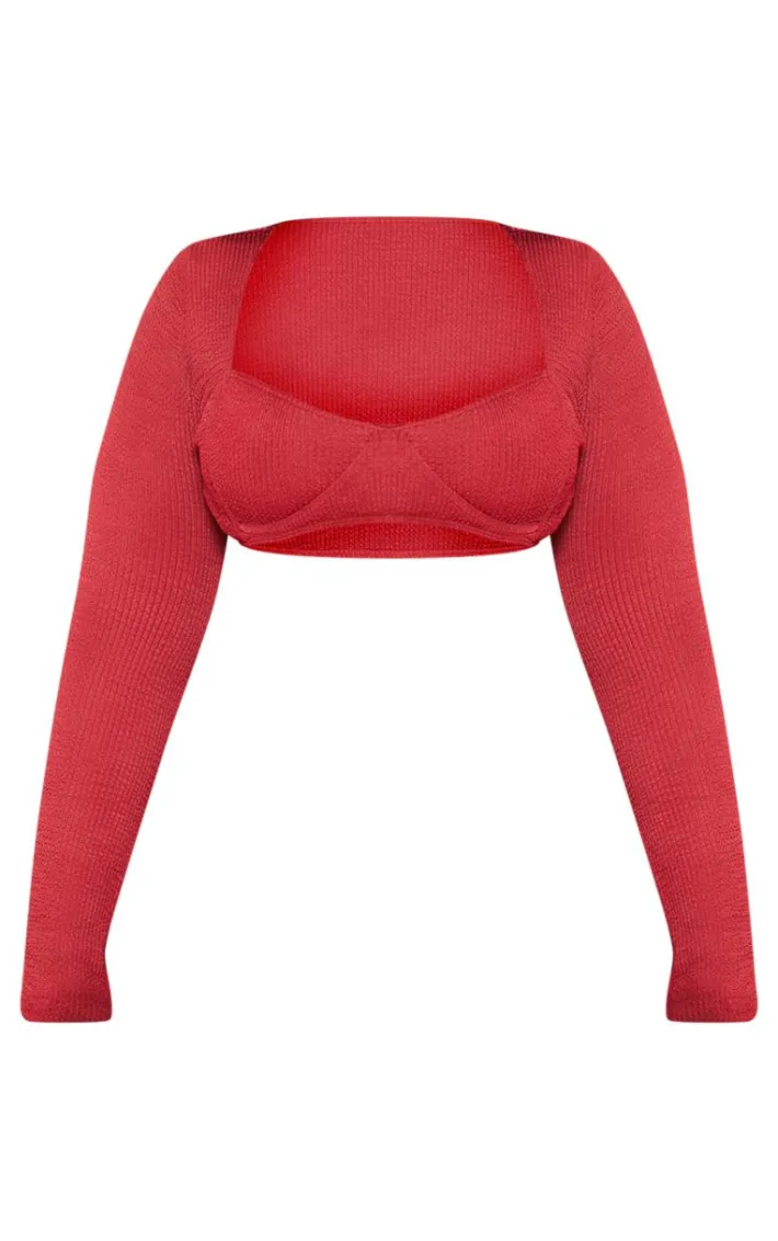 Soak up the sun in style with this plus cherry red crinkle long sleeve cupped bikini top. This bikini top is brought to you in a cherry red crinkle material with long sleeves and a cupped design, what’s not to love? Complete the look an style this with the matching bikini bottoms, sandals and gold accessories for a look like no other.