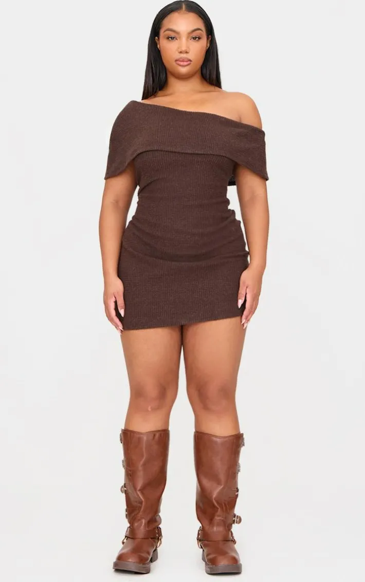 This plus chocolate brushed rib asymmetric bodycon dress is here to solve all of your ‘what to wear’ dilemmas this weekend. Brought to you in a chocolate brushed rib material with an asymmetric design and a flattering bodycon fit, we are obsessed. Style this rib dress with chunky boots and simple accessories for a look that can be dressed up or down to suit your plans.