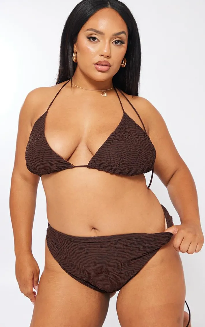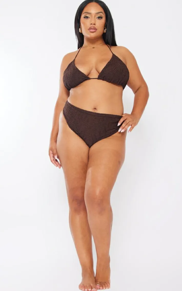 Add some of this season’s must-have hue into your vacay wardrobe with these plus chocolate textured high waisted bikini bottoms, they’re the ultimate must-have for your next beach day and beyond. These plus bikini bottoms include a chocolate hue textured material with a high waisted design and a figure-flattering fit, we’re obsessed. Style these bikini bottoms with the matching top and your fave accessories for a look everyone will want.