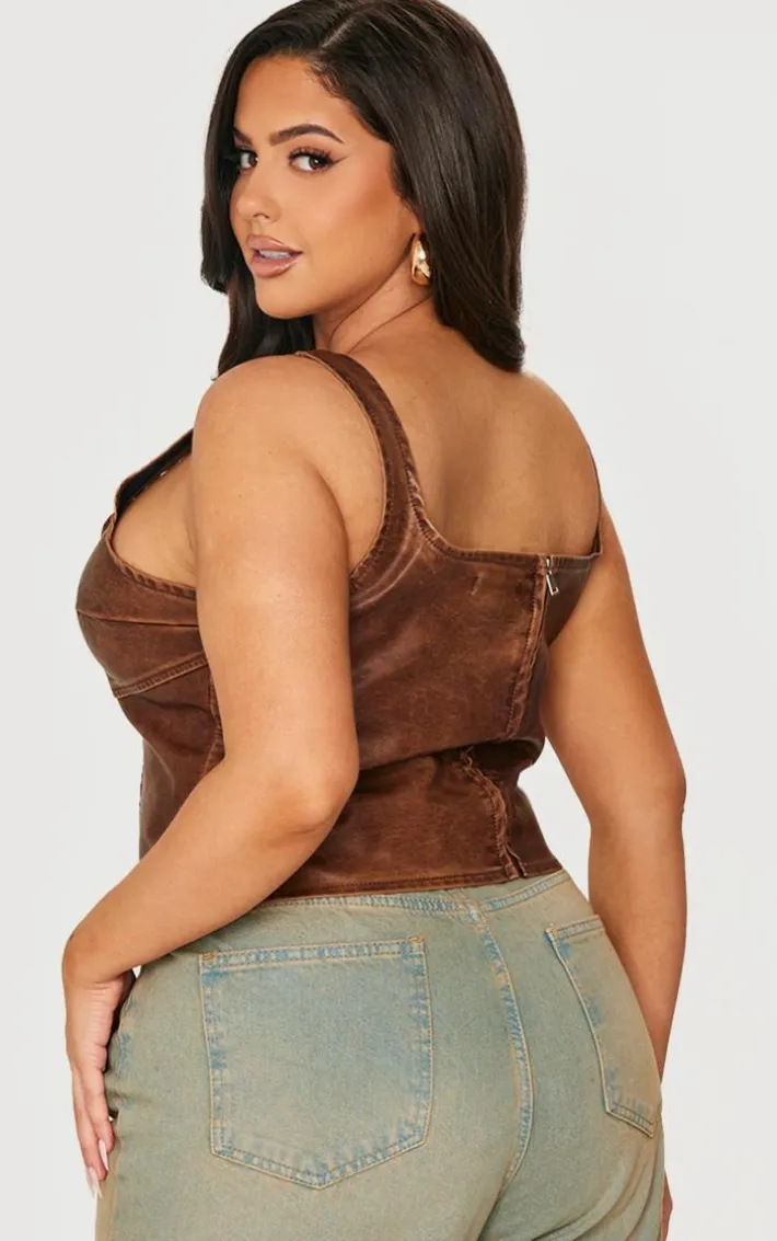 Meet your new weekend wardorbe saviour with this plus chocolate washed faux leather lace up corset top. Brought to you in a chocolate hue washed faux leather material with a lace up design and a corset fit, how can you resist? Style this corset top with wide leg jeans and heels for a simple yet chic look we’re loving.