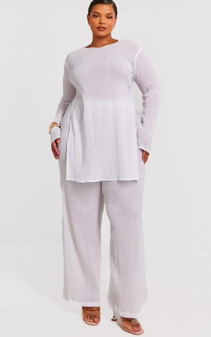 Add some drama into your weekend wardrobe with these plus cream cheesecloth textured wide leg pants. Brought to you in a cream cheesecloth material with a textured design, we are seriously obsessed. With it’s wide leg fit, you’re sure to have all eyes on you. To complete the look style with some clear heels and the matching top for a date night look.