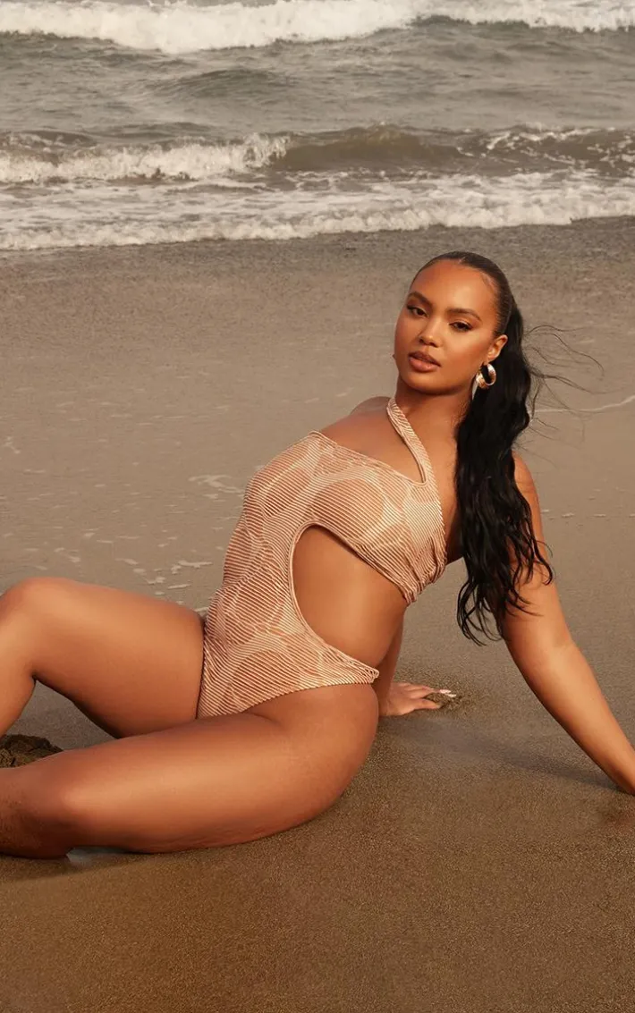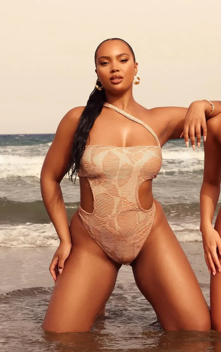 Hit refresh on your vacay wardrobe with this plus cream contrast textured rib asymmetric cut out swimsuit. This swimsuit is made from a cream textured material with an asymmetric design for a flattering fit that will be showing off your shape. With a cut out design, what more could you want ? Team with your fave accessories and some comfy sandals to elevate this effortlessly chic look.