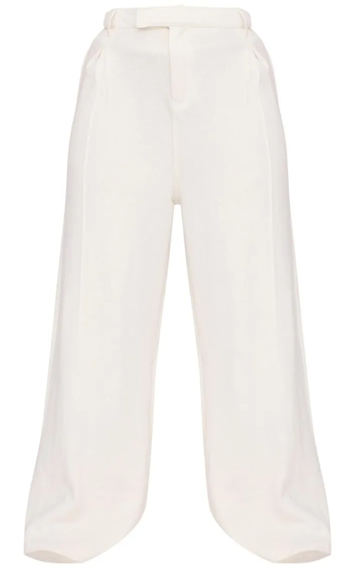 Add a touch of chic to your new season wardrobe with these plus cream pintuck tailored sweatpants. Brought to you in a cream hue material with pintuck detailing and a flattering tailored fit, how can you resist? Style these tailored sweatpants with a one shoulder design and court heels for a look that is sure to have all eyes on you.