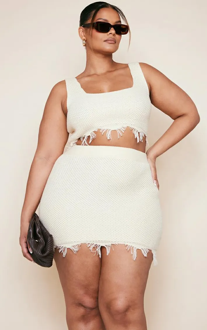 Got plansthis weekend? Then this plus cream raw hem knit crop top is just what you’re looking for. Its cream hue material adds those dreamy vibes to your look whilst its raw hem detail brings an extra edge. This plus crop top is the ultimate styling staple this season and can be paired with all your existing pieces. Or shop the look and add the matching skirt to your basket along with a clutch bag, high-heels and shades for a look that is sure to impress.