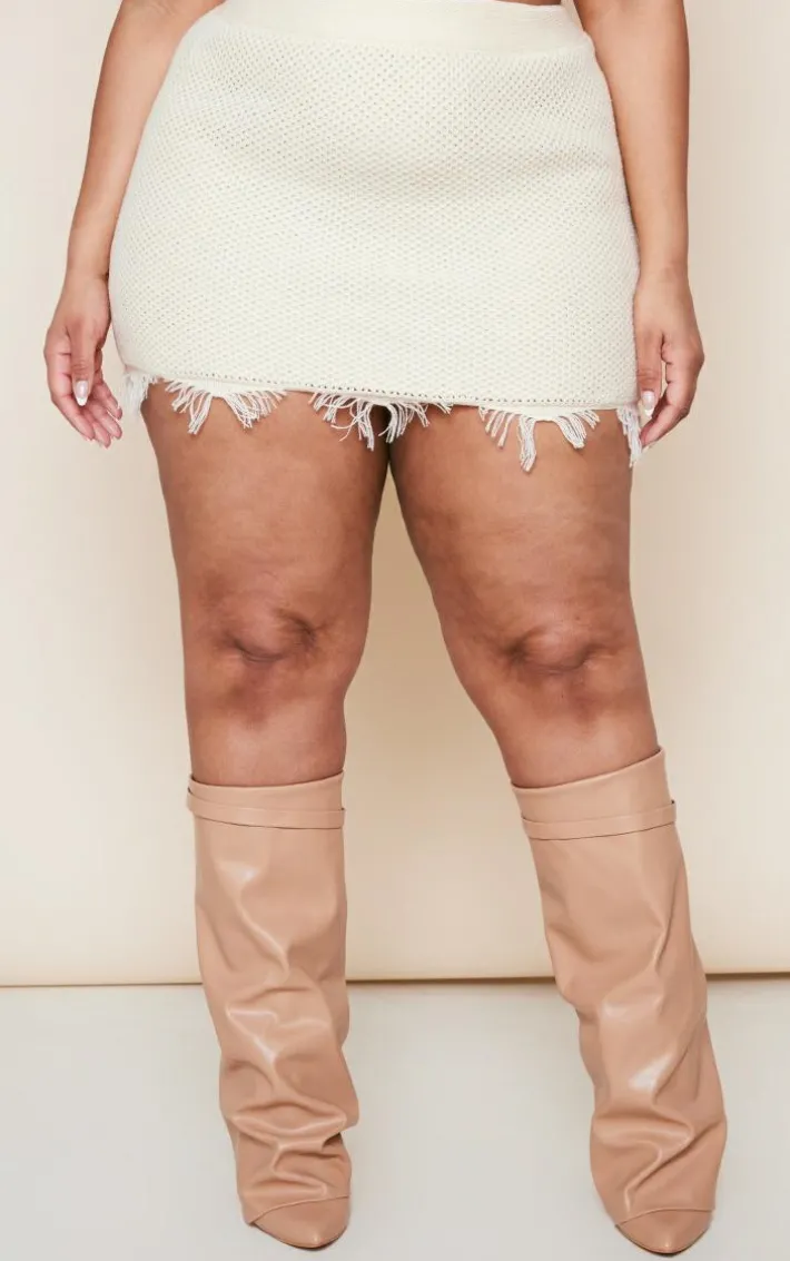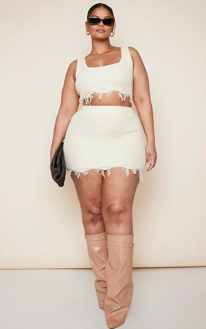 We’re obsessed with this plus creamy raw hem knit skirt for all your styling needs this season. Whether you have weekend plans or just want to switch up your off-duty style game, this plus skirt is calling your name. Its cream knit material adds a luxe touch whilst its raw hem will take your look from 0-100. Team this plus skirt with the matching top, heeled boots, a clutch bag and shades for a look that is sure to impress.