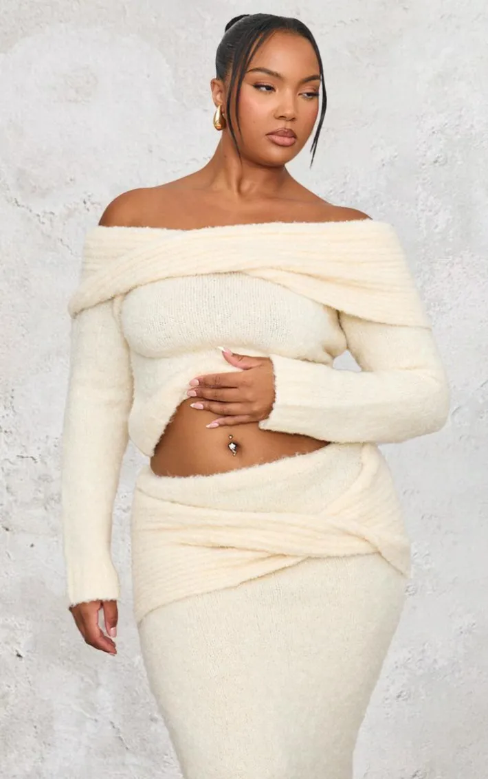Show off your chic side with this plus cream soft bobble knit bardot foldover top. Brought to you in a cream soft bobble knit material with a bardot foldover design giving you a flattering fit like no other. Team this unreal top with the matching maxi skirt and a pair of boots for a look that will get heads turning for all the right reasons.