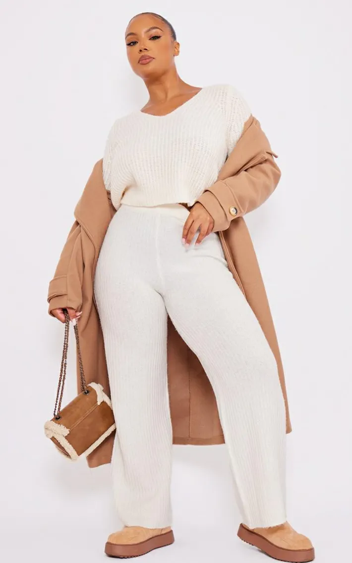 Take the stress out of everyday styling with these plus cream soft knit wide leg pants. Brought to you in a cream hue soft knit material with a wide leg design and a seriously comfy fit, what more could you want? Pair these plus pants with the matching sweater, a long coat and chunky boots for an a/w look that is sure to earning you some serious style points.