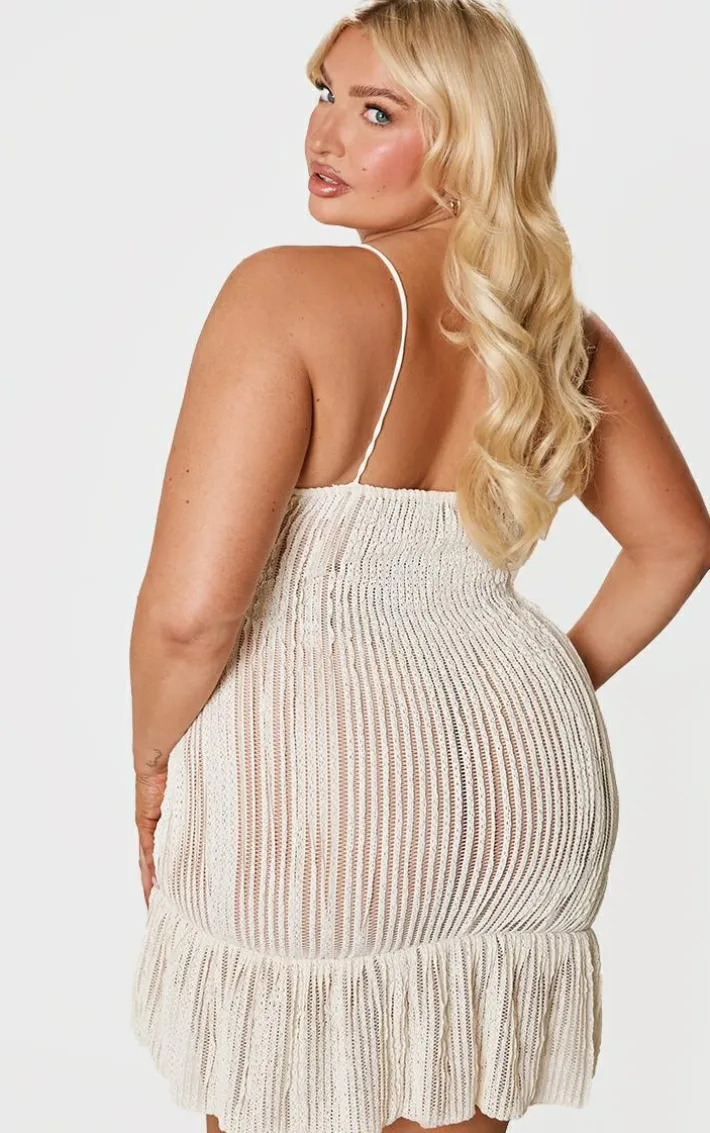 This plus cream textured frill hem cut out mini dress will give your the ultimate flattering fit for those warmer weather days or nights out with your besties. Brought to you in a cream textured material with a frill hem feature and a bold cut out front, you won’t blend in with this. Style with contrasting color strappy heels and your must-have accessories and you’re set to go.