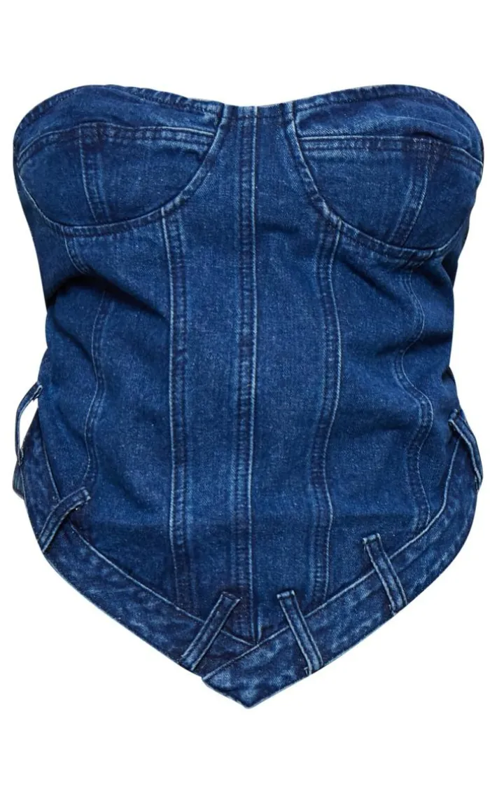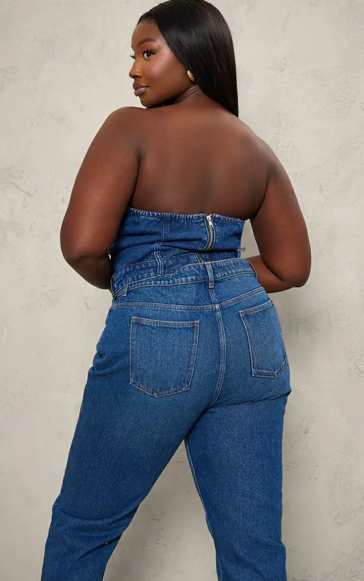 Nail the double denim trend with this plus dark blue waistband hem bandeau denim corset. Brought to you in a dark blue hue denim material with a waistband hem design and a bandeau neckline, we just can’t get enough. Style this denim corset with matching hue jeans, sneakers and simple gold accessories for a fierce off-duty ‘fit that won’t go unnoticed.