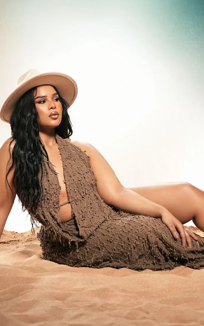 Make a statement with this plus dark taupe distressed side split maxi skirt. Brought to you in a dark taupe material with a distressed design, you won’t be able to resist this skirt. Its side split is sure to make you the center of attention wherever you step foot. So what are you waiting for? Shop the look and team with the matching top, some statement boots and your fave hat for a look everyone will be talking about.