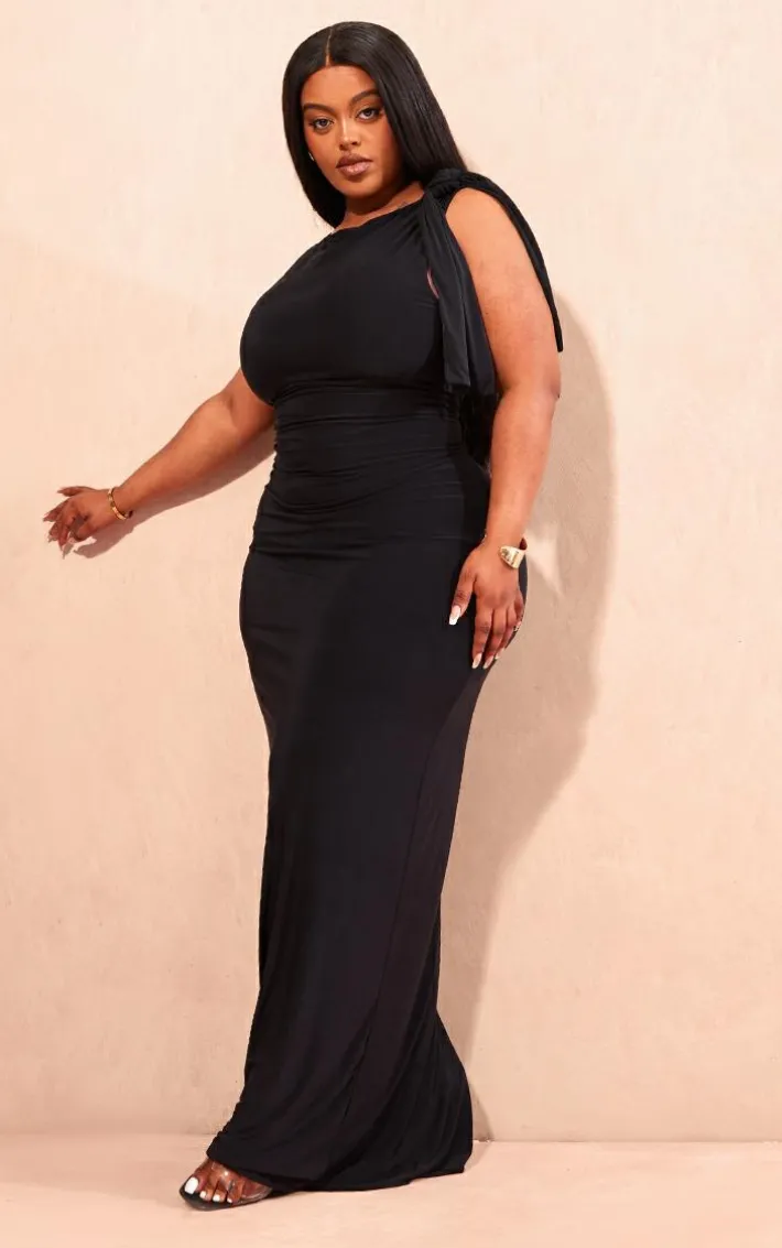 Set major trends this season with this plus deep black slinky knot drape midaxi dress. Brought to you in a deep black slinky material with a knot drape design, what more could you want ? This midaxi dress will have you feeling effortlessly chic all season long. Team with your fave accessories and a pair of heels for a fool proof finish we are obsessing over.