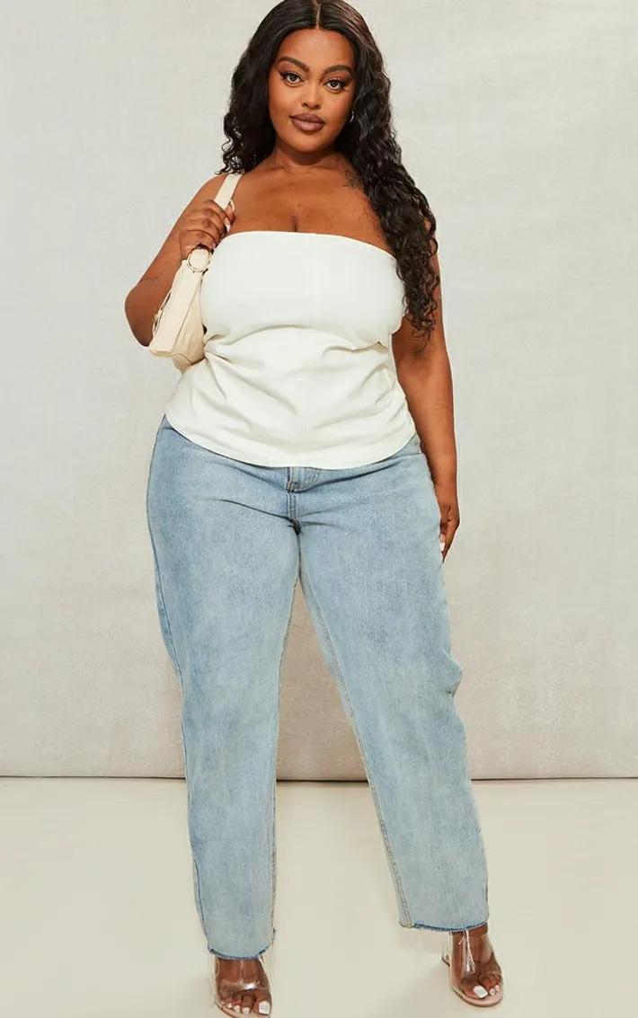 Got plansin your diary? Then this plus ecru contrast stretch denim corset top is here to solve all your ‘what to wear’ dilemmas. It is made using an ecru denim material with a corset style that is perfect for flattering your shape and a zip fastening, you won’t be able to resist this dreamy plus corset top. Pair it with wide leg blue jeans, clear slip-on heels and a shoulder bag for a look that will have you nailing the ‘jeans and a nice top’ brief.