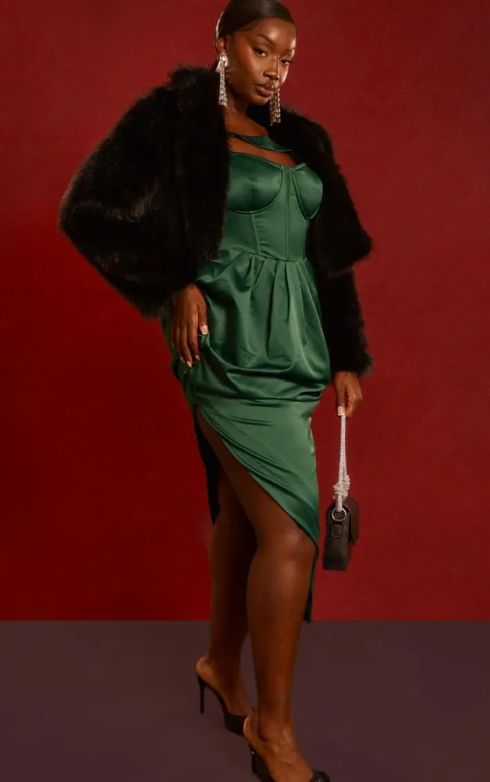 Be the ultimate show stopper this season with this plus emerald green constructed satin bonded midi dress, get ready to steal all the stares. Made using an emerald green satin material with a constructed design and a mid length, you won’t be able to resist this plus dress. Pair it with your fave heels and simple accessories for a flawless look we’re loving.