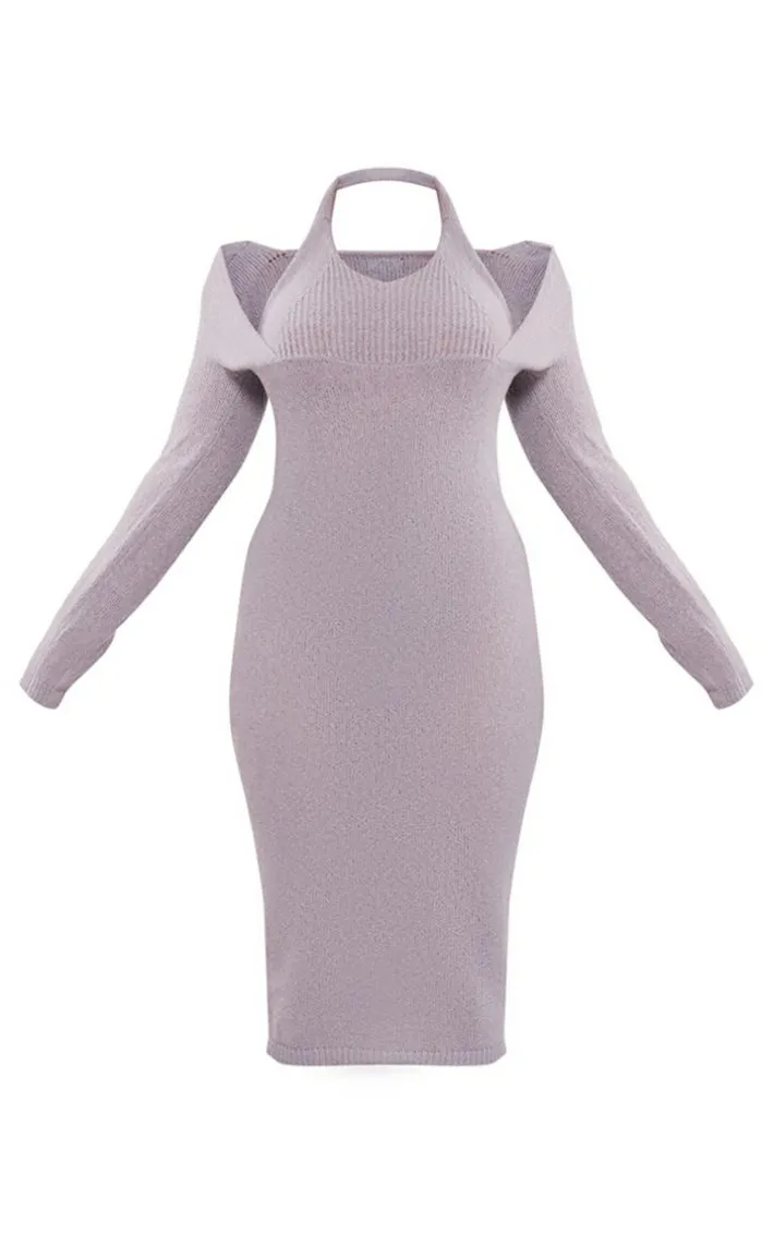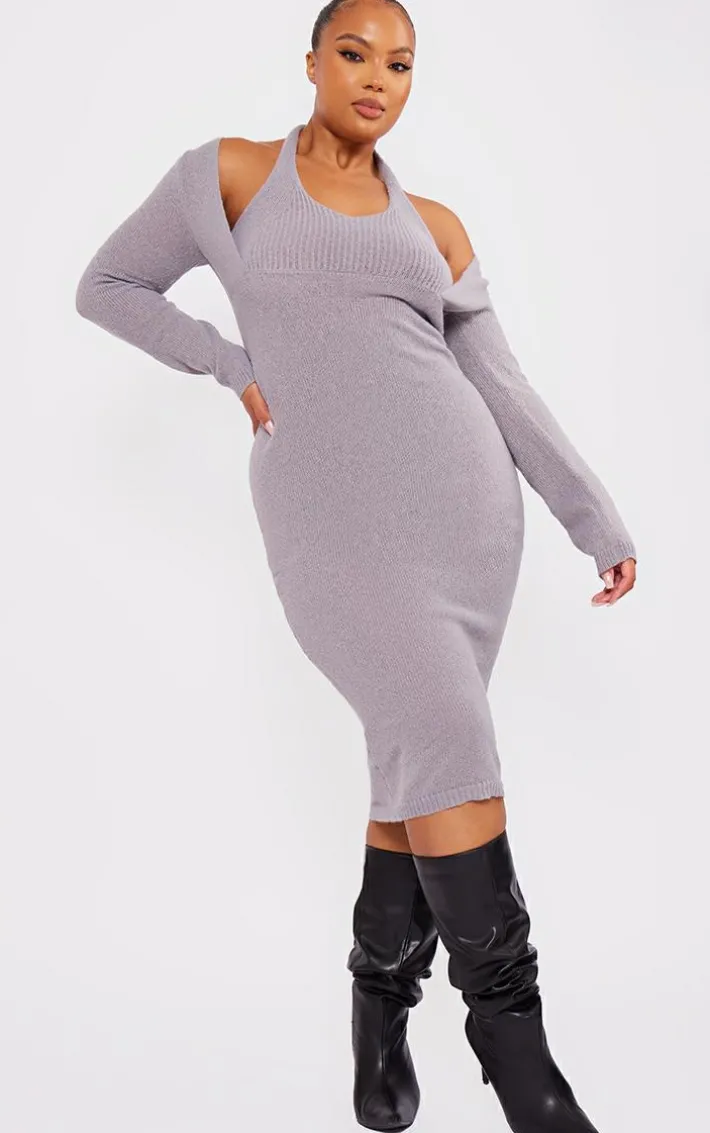 You won’t have to sacrifice comfort for style with this plus grey halterneck knitted midi dress. Brought to you in a grey hue knitted material with a halterneck design, long sleeves and a figure-hugging midi length, how can you say no? Perfect for dressing up or down, this midi dress is sure to be a staple in your new season wardrobe. Style with knee length heeled boots and gold accessories for a fool-proof finish.