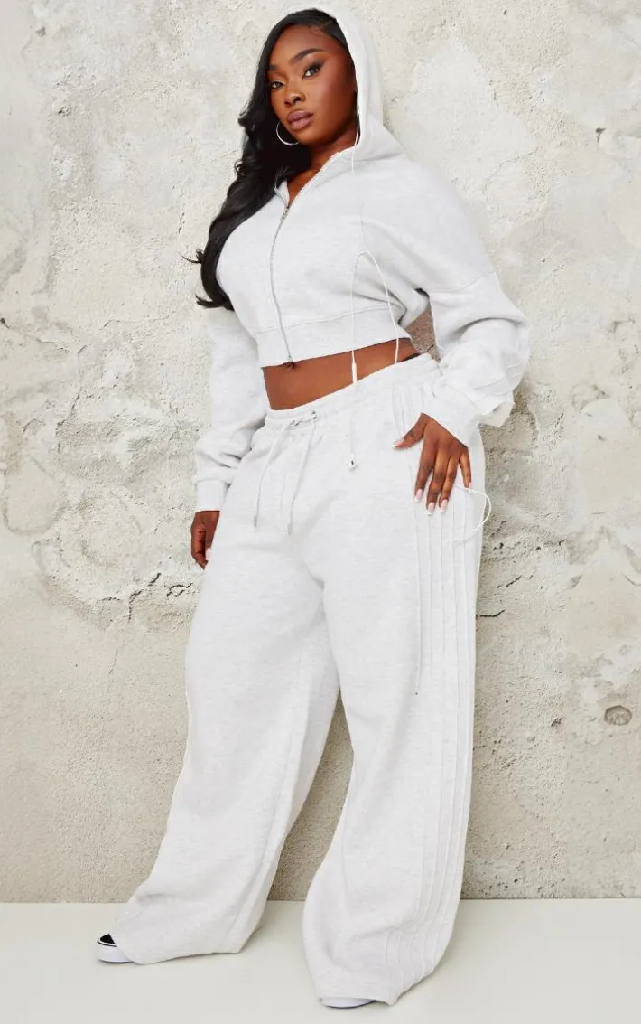 Give your off-duty wardrobe the upgrade it deserves with these plus grey marl seam detail wide leg sweatpants. Brought to you in a grey marl material with a wide leg design and seam detailing, how can you resist? Pair these wide leg sweatpants with the matching hoodie and sneakers for a look you will be reaching for again and again.