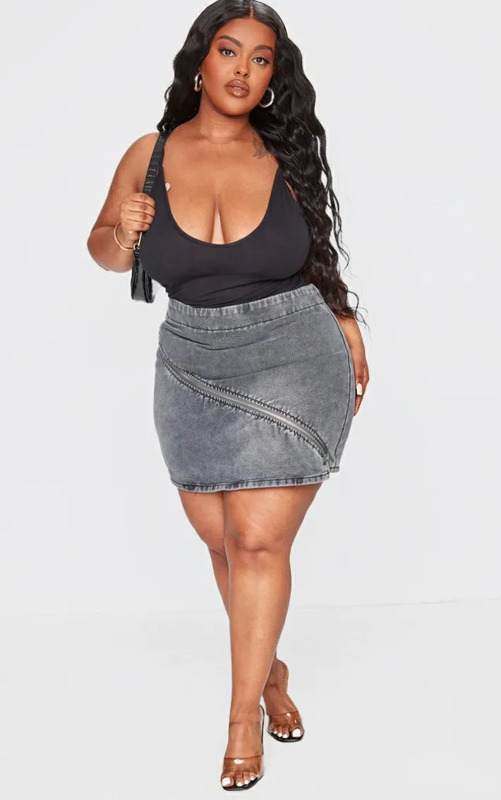 Say hello to your new season staple with this plus grey washed zip detail denim skirt. Brought to you in a grey washed denim detail and zip detailing, what more could you want? This denim skirt is here to banish any of your what to wear dilemmas. Style with a crop top and clear high heels for a look that will have you being the topic of everyone’s conversation.