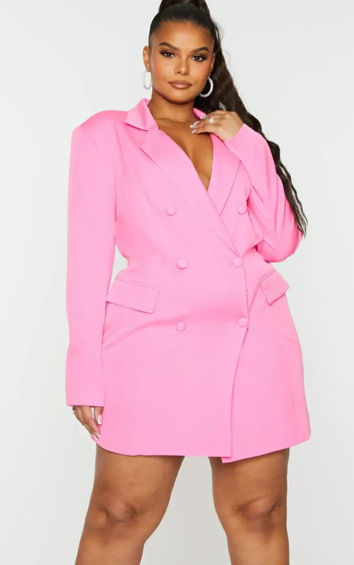 Switch up your usual evening attire for this blazer dress. Featuring a hot pink material with double-breasted detailing and a structured design, we’re obsessed. Team this with clear strap heels and gold hoops for an effortlessly glam combo.