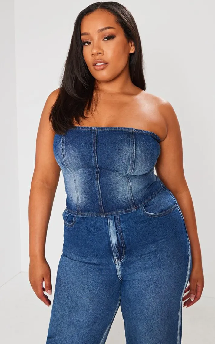 We’re all about denim this season and this plus indigo blue wash washed down distressed look bandeau denim top is sure to turn heads for all the right reasons. Made from an indigo blue wash denim material with a distressed design and a bandeau neckline, we know you won’t be able to resist adding this plus top to your basket. Team with the matching jeans, clear heels and fresh accessories for a weekend-worthy finish.