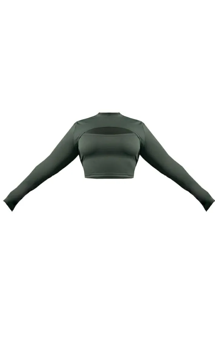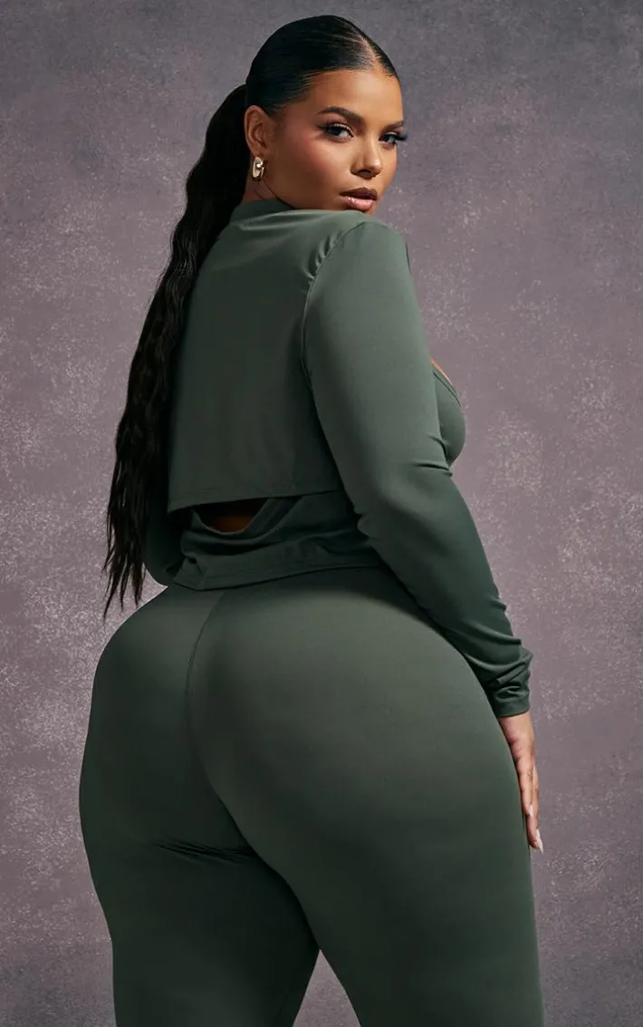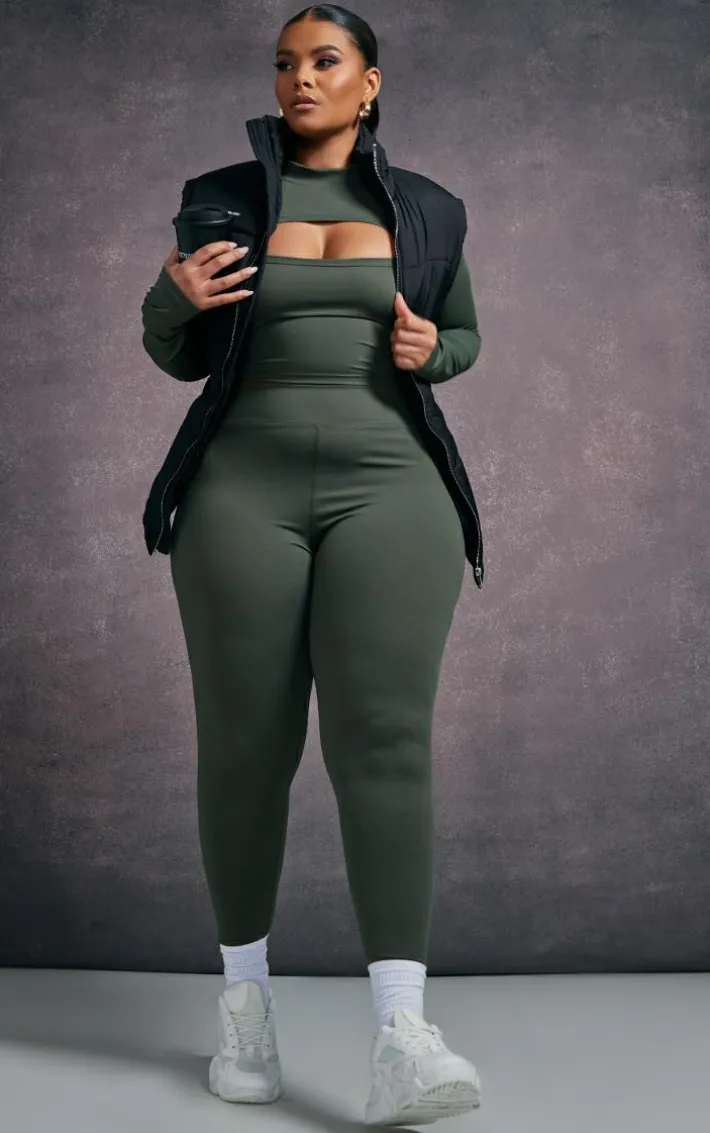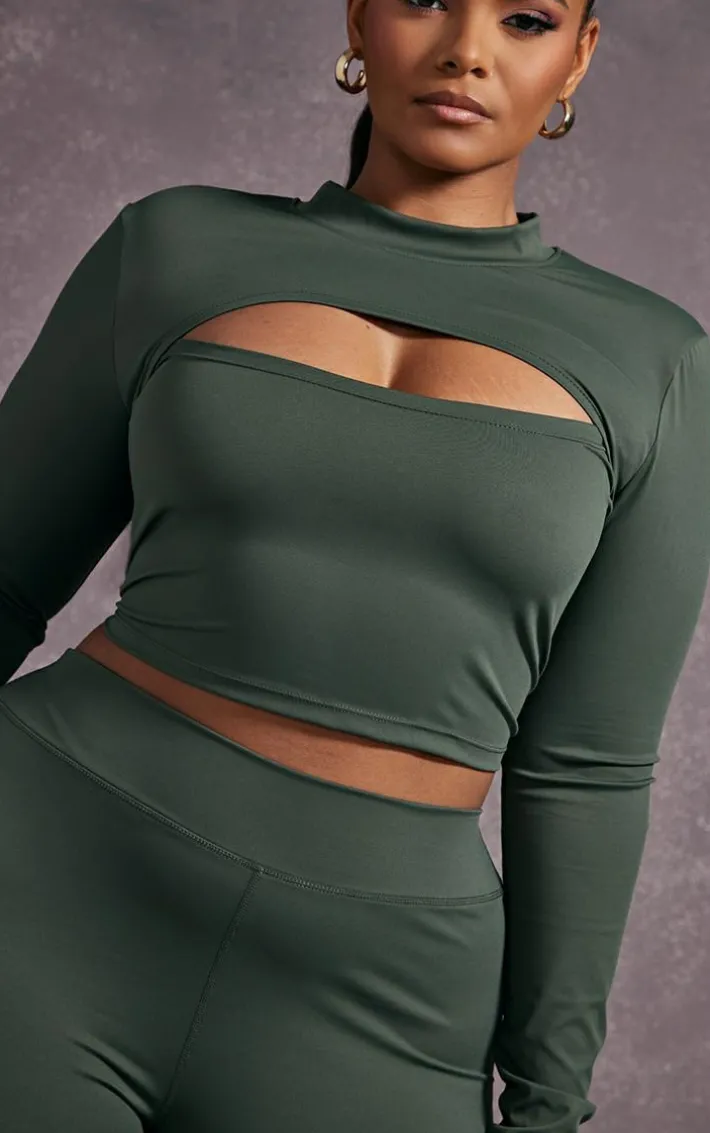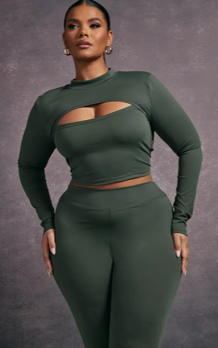 Hit the gym in style with this plus khaki cut-out detail active top. Its khaki hue material is so on-trend for this season and its cut-out detail adds a touch of luxe to your gym collection. This plus active top is the ultimate way to look fresh and on-point as you glow up this season. Simply style with the matching leggings, chunky white sneakers, and a vest for a sporty vibe that is sure to impress.