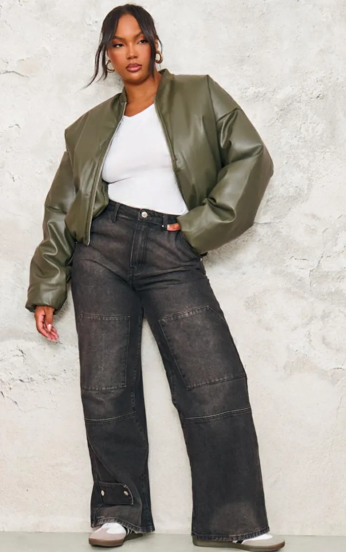 Make a statement this season with this plus khaki faux leather oversized bomber jacket. Brought to you in a khaki faux leather material with an oversized fit, what’s not to love? This bomber jacket is all you need to feel effortlessly edgy. Team with some comfy leggings and a pair of gold hoops for a fool proof finish.