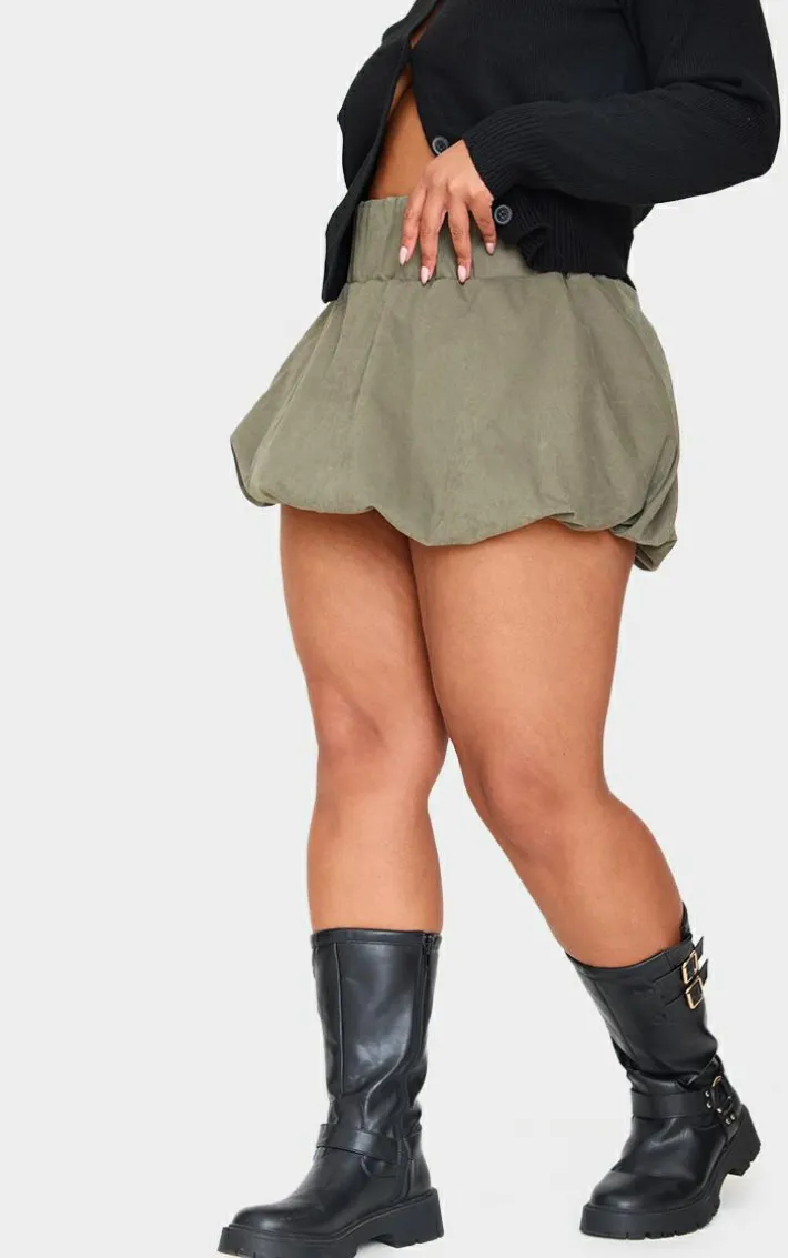 Take your look to new heights with this plus khaki twill low rise puffball mini skirt. Brought to you in a khaki twill material with a low rise fit and a puffball design, you are sure to be center of attention in this mini skort. Style with your fave cardigan and your fave boots for a look like no other.