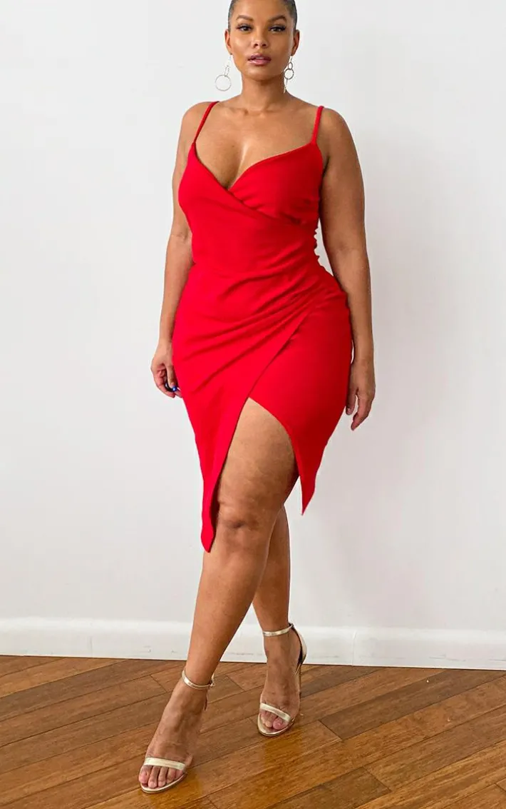 Give your look a bold update with this midi dress. Featuring a red material with a wrap over design and a midi length. style this with mules and minimal accessories to complete the look.