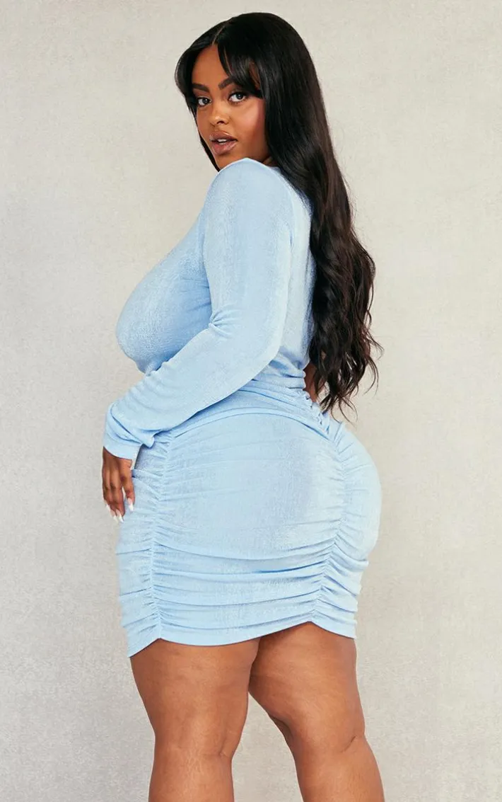 Bring all the glam vibes to your weekend plans with this plus light blue acetate slinky one-shoulder bodycon dress. Its light blue acetate slinky material adds some bold hues to your look whilst its one-shoulder design gives you that chic touch. This plus bodycon dress is sure to tick all the boxes for your weekend ‘fit as well as get everyone talking. Style with your staple heels, gold accessories and a mini bag, for a dreamy vibe that won’t go unnoticed.