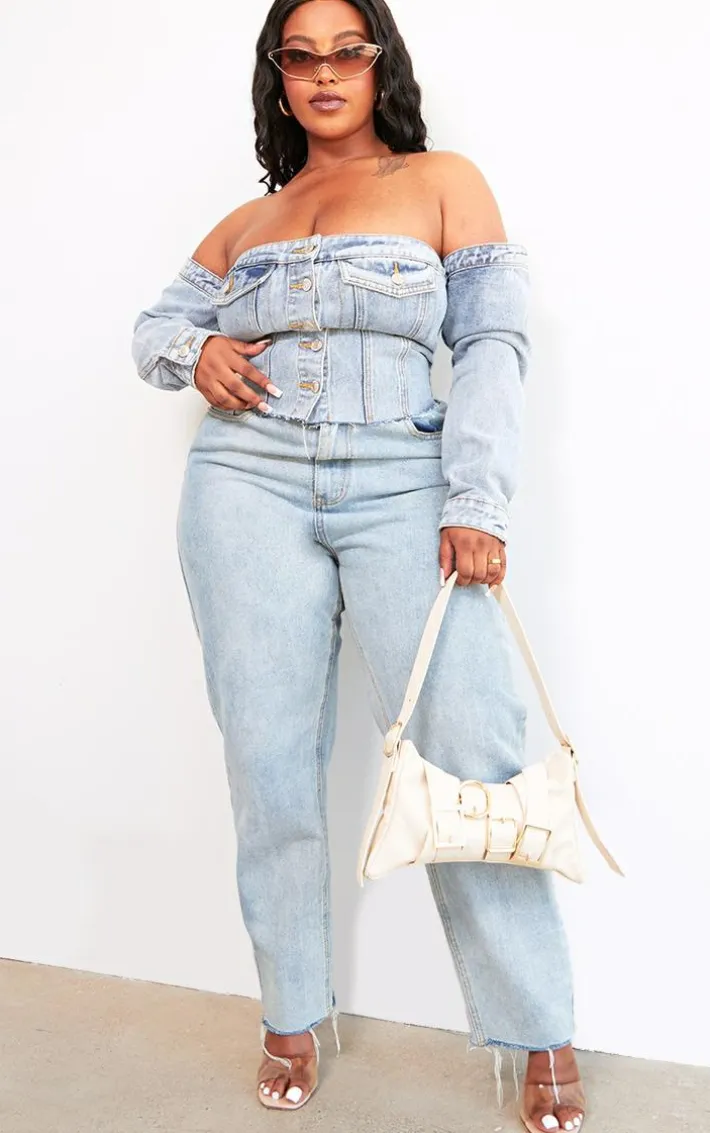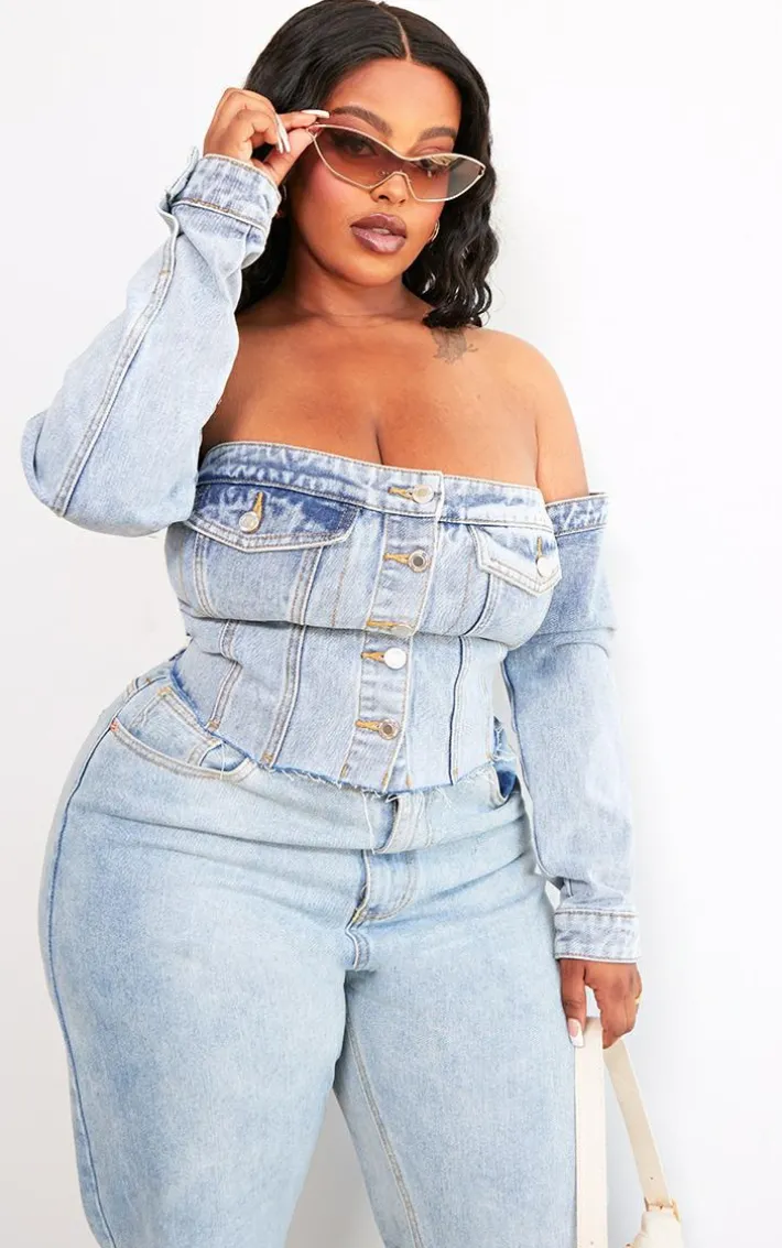 We are all about the denim this season and this plus light blue wash button up bardot denim corset is sure to have you earning some serious style points. Brought to you in a light blue wash denim material with a button up design, a bardot neckline and a figure-hugging fit what more could you want? Nail the double denim trend by styling this plus corset with jeans, heels and a mini bag for a look we just can’t get enough of.