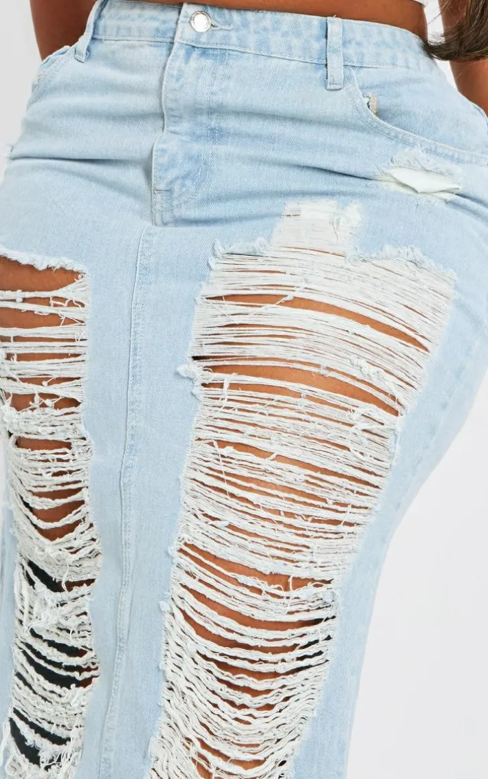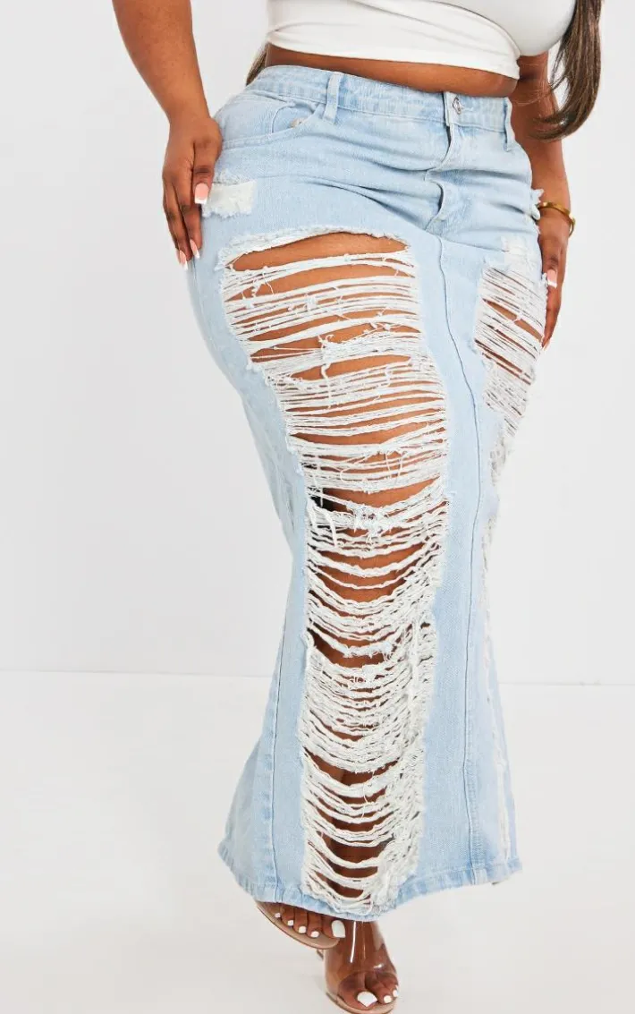 Found some last-minute weekend plans and need an unreal ‘fit? Then we have you covered with this styling staple, a plus light blue wash extreme fraying detail denim maxi skirt. With a light blue denim wash material with an extreme fraying detail, we’re obsessed. Work your styling techniques and add a white crop top, high heels and a mini bag for a weekend-worthy finish that will gain all the likes.