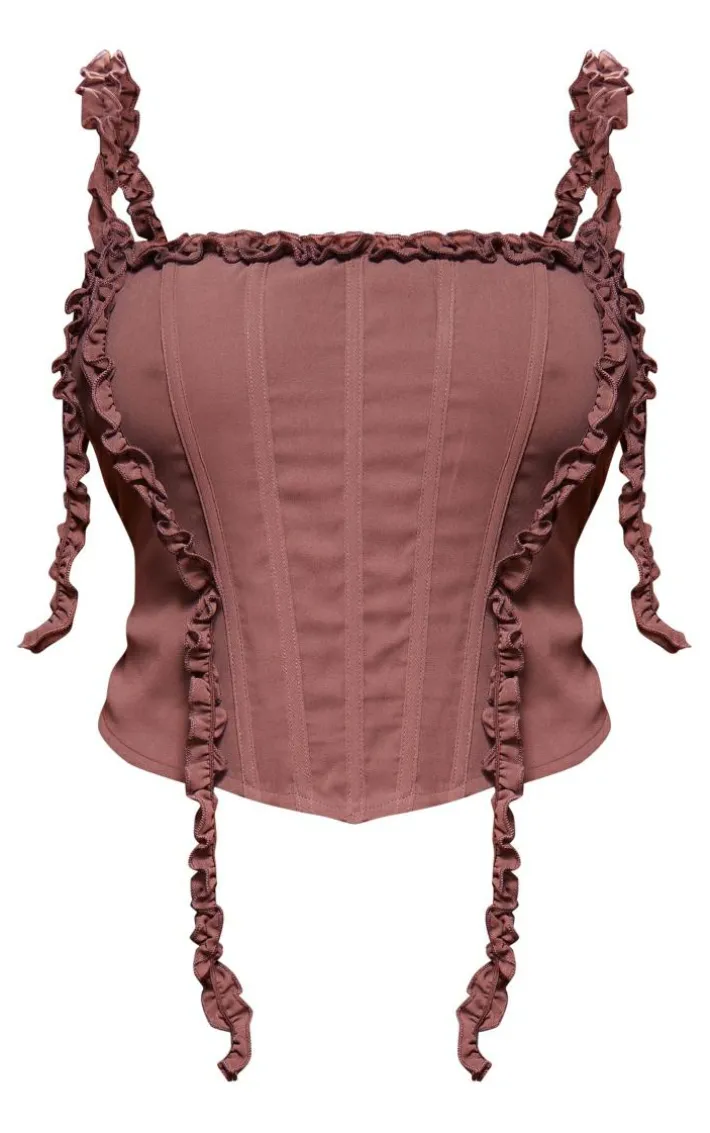 Take your weekend look to a whole new level with this plus light brown frill chiffon corset. Brought to you in a light brown hue chiffon material with frill detailing for that subtle touch of glam and a figure-worshipping corset fit, what more could you want? Pair this plus corset effortlessly with the matching skirt and just add heels to complete the look we’re loving.