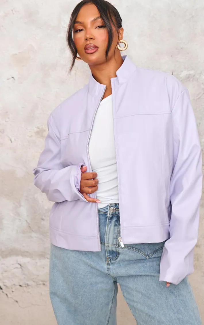 Set major trends with white plus lilac PU racer neck jacket. Brought to you in a lilac PU material with a racer neck design, bringing all the edge to any outfit of the day. This jacket is perfect for those day to night looks and beyond, what are you waiting for ? Shop the look and pair it with your fave jeans and accessories, it’s a definite yes from us.