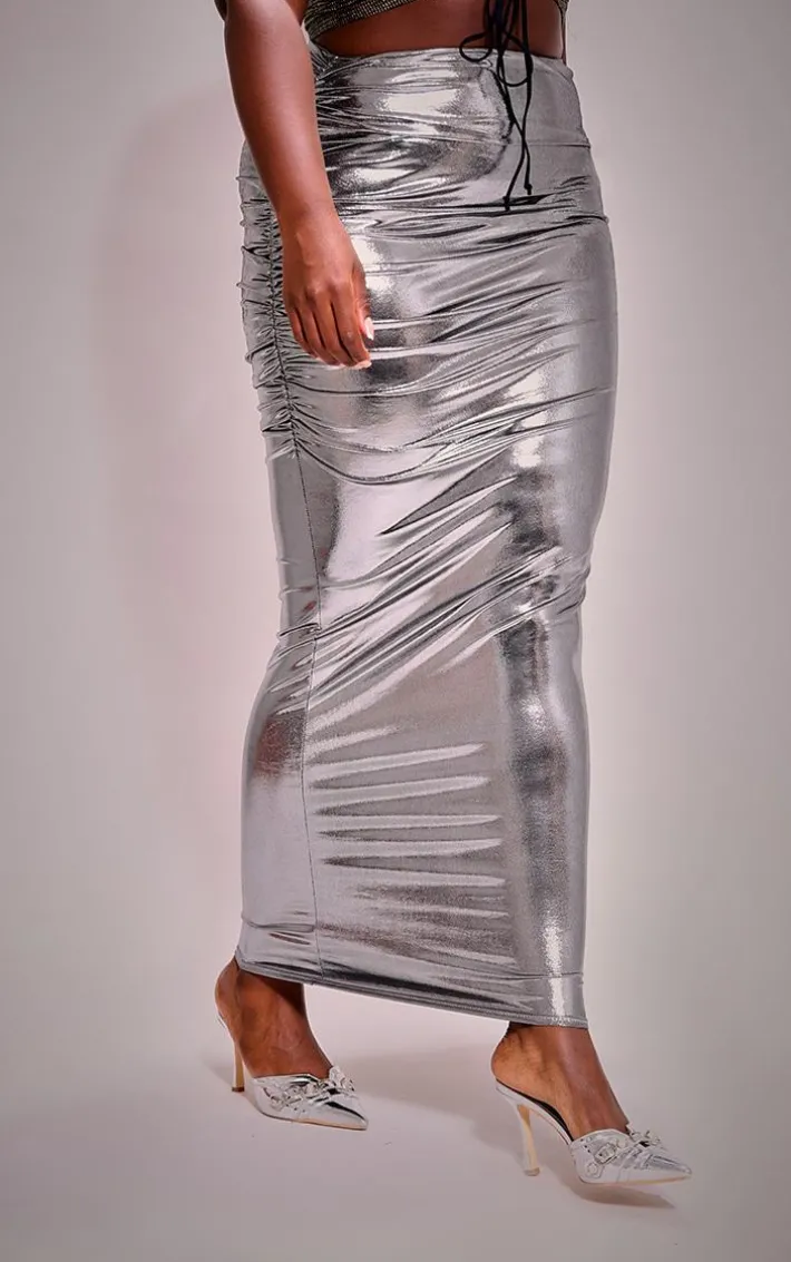 You can never have too many skirts , that’s why we are obsessing over this plus metallic ruched maxi skirt. Brought to you in a metallic material with a ruched design, what’s not to love? Its maxi length will have you standing out from the rest. Team with a cropped tee and some court heels to complete the look everyone is loving.